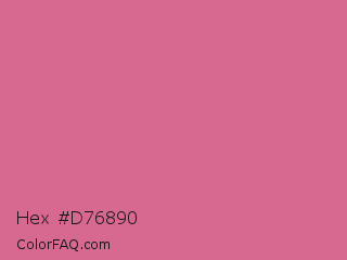 Hex #d76890 Color is a light rose color and the nearest color is Pale Red Violet #db7093. Hex code #d76890 and RGB value is rgb(215,104,144). In RGB color space, this color is composed of 84% red, 41% green, 56% blue, In CMYK color space, this color is composed of 0% cyan, 52% magenta, 33% yellow , 16% black , In HSL color space, this color has a hue angle of 338° , 58% saturation and 63% lightness.