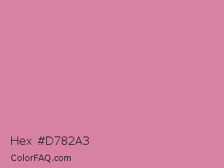 Hex #d782a3 Color is a light rose color and the nearest color is Shimmering Blush #d98695. Hex code #d782a3 and RGB value is rgb(215,130,163). In RGB color space, this color is composed of 84% red, 51% green, 64% blue, In CMYK color space, this color is composed of 0% cyan, 40% magenta, 24% yellow , 16% black , In HSL color space, this color has a hue angle of 337° , 52% saturation and 68% lightness.