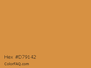 Hex #d79142 Color is a normal orange color and the nearest color is Tigers Eye #e08d3c. Hex code #d79142 and RGB value is rgb(215,145,66). In RGB color space, this color is composed of 84% red, 57% green, 26% blue, In CMYK color space, this color is composed of 0% cyan, 33% magenta, 69% yellow , 16% black , In HSL color space, this color has a hue angle of 32° , 65% saturation and 55% lightness.