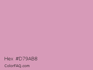 Hex #d79ab8 Color is a light rose color and the nearest color is Careys Pink #d29eaa. Hex code #d79ab8 and RGB value is rgb(215,154,184). In RGB color space, this color is composed of 84% red, 60% green, 72% blue, In CMYK color space, this color is composed of 0% cyan, 28% magenta, 14% yellow , 16% black , In HSL color space, this color has a hue angle of 330° , 43% saturation and 72% lightness.