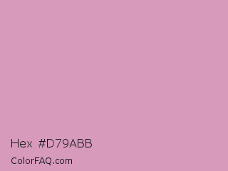 Hex #d79abb Color is a light rose color and the nearest color is Shocking #e292c0. Hex code #d79abb and RGB value is rgb(215,154,187). In RGB color space, this color is composed of 84% red, 60% green, 73% blue, In CMYK color space, this color is composed of 0% cyan, 28% magenta, 13% yellow , 16% black , In HSL color space, this color has a hue angle of 328° , 43% saturation and 72% lightness.