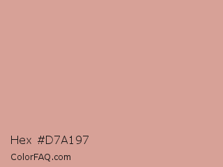 Hex #d7a197 Color is a light red color and the nearest color is Eunry #cfa39d. Hex code #d7a197 and RGB value is rgb(215,161,151). In RGB color space, this color is composed of 84% red, 63% green, 59% blue, In CMYK color space, this color is composed of 0% cyan, 25% magenta, 30% yellow , 16% black , In HSL color space, this color has a hue angle of 9° , 44% saturation and 72% lightness.