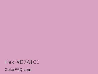 Hex #d7a1c1 Color is a light magenta color and the nearest color is Light Medium Orchid #d39bcb. Hex code #d7a1c1 and RGB value is rgb(215,161,193). In RGB color space, this color is composed of 84% red, 63% green, 76% blue, In CMYK color space, this color is composed of 0% cyan, 25% magenta, 10% yellow , 16% black , In HSL color space, this color has a hue angle of 324° , 40% saturation and 74% lightness.
