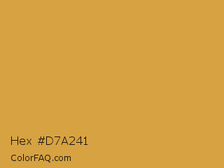Hex #d7a241 Color is a normal orange color and the nearest color is Gold Metallic #d4af37. Hex code #d7a241 and RGB value is rgb(215,162,65). In RGB color space, this color is composed of 84% red, 64% green, 25% blue, In CMYK color space, this color is composed of 0% cyan, 25% magenta, 70% yellow , 16% black , In HSL color space, this color has a hue angle of 39° , 65% saturation and 55% lightness.
