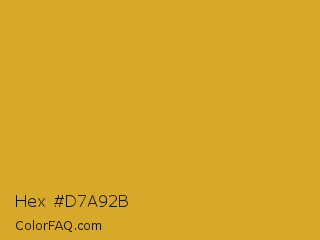 Hex #d7a92b Color is a normal orange color and the nearest color is Golden Grass #daa520. Hex code #d7a92b and RGB value is rgb(215,169,43). In RGB color space, this color is composed of 84% red, 66% green, 17% blue, In CMYK color space, this color is composed of 0% cyan, 21% magenta, 80% yellow , 16% black , In HSL color space, this color has a hue angle of 44° , 68% saturation and 51% lightness.