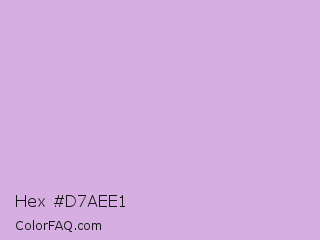Hex #d7aee1 Color is a light purple color and the nearest color is Tropical Violet #cda4de. Hex code #d7aee1 and RGB value is rgb(215,174,225). In RGB color space, this color is composed of 84% red, 68% green, 88% blue, In CMYK color space, this color is composed of 4% cyan, 23% magenta, 0% yellow , 12% black , In HSL color space, this color has a hue angle of 288° , 46% saturation and 78% lightness.