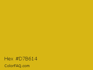 Hex #d7b614 Color is a normal yellow color and the nearest color is Gold Tips #deba13. Hex code #d7b614 and RGB value is rgb(215,182,20). In RGB color space, this color is composed of 84% red, 71% green, 8% blue, In CMYK color space, this color is composed of 0% cyan, 15% magenta, 91% yellow , 16% black , In HSL color space, this color has a hue angle of 50° , 83% saturation and 46% lightness.