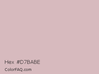 Hex #d7babe Color is a light red color and the nearest color is Blossom #dcb4bc. Hex code #d7babe and RGB value is rgb(215,186,190). In RGB color space, this color is composed of 84% red, 73% green, 75% blue, In CMYK color space, this color is composed of 0% cyan, 13% magenta, 12% yellow , 16% black , In HSL color space, this color has a hue angle of 352° , 27% saturation and 79% lightness.