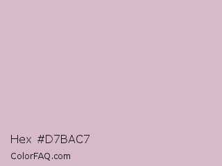Hex #d7bac7 Color is a light rose color and the nearest color is Pink Flare #e1c0c8. Hex code #d7bac7 and RGB value is rgb(215,186,199). In RGB color space, this color is composed of 84% red, 73% green, 78% blue, In CMYK color space, this color is composed of 0% cyan, 13% magenta, 7% yellow , 16% black , In HSL color space, this color has a hue angle of 333° , 27% saturation and 79% lightness.