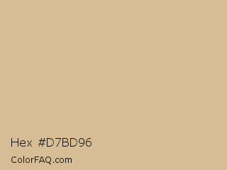 Hex #d7bd96 Color is a light orange color and the nearest color is Cameo #d9b99b. Hex code #d7bd96 and RGB value is rgb(215,189,150). In RGB color space, this color is composed of 84% red, 74% green, 59% blue, In CMYK color space, this color is composed of 0% cyan, 12% magenta, 30% yellow , 16% black , In HSL color space, this color has a hue angle of 36° , 45% saturation and 72% lightness.