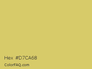 Hex #d7ca68 Color is a light yellow color and the nearest color is Tacha #d6c562. Hex code #d7ca68 and RGB value is rgb(215,202,104). In RGB color space, this color is composed of 84% red, 79% green, 41% blue, In CMYK color space, this color is composed of 0% cyan, 6% magenta, 52% yellow , 16% black , In HSL color space, this color has a hue angle of 53° , 58% saturation and 63% lightness.