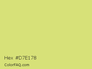 Hex #d7e178 Color is a light yellow color and the nearest color is Booger Buster #dde26a. Hex code #d7e178 and RGB value is rgb(215,225,120). In RGB color space, this color is composed of 84% red, 88% green, 47% blue, In CMYK color space, this color is composed of 4% cyan, 0% magenta, 47% yellow , 12% black , In HSL color space, this color has a hue angle of 66° , 64% saturation and 68% lightness.