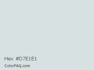 Hex #d7e1e1 Color is a very light cyan color and the nearest color is Geyser #d4dfe2. Hex code #d7e1e1 and RGB value is rgb(215,225,225). In RGB color space, this color is composed of 84% red, 88% green, 88% blue, In CMYK color space, this color is composed of 4% cyan, 0% magenta, 0% yellow , 12% black , In HSL color space, this color has a hue angle of 180° , 14% saturation and 86% lightness.