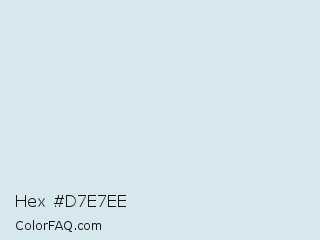 Hex #d7e7ee Color is a very light blue color and the nearest color is Azureish White #dbe9f4. Hex code #d7e7ee and RGB value is rgb(215,231,238). In RGB color space, this color is composed of 84% red, 91% green, 93% blue, In CMYK color space, this color is composed of 10% cyan, 3% magenta, 0% yellow , 7% black , In HSL color space, this color has a hue angle of 198° , 40% saturation and 89% lightness.