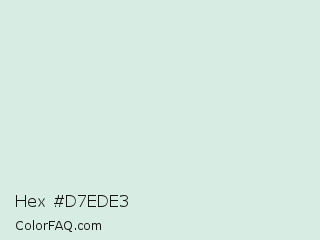 Hex #d7ede3 Color is a very light green color and the nearest color is Swans Down #dcf0ea. Hex code #d7ede3 and RGB value is rgb(215,237,227). In RGB color space, this color is composed of 84% red, 93% green, 89% blue, In CMYK color space, this color is composed of 9% cyan, 0% magenta, 4% yellow , 7% black , In HSL color space, this color has a hue angle of 153° , 38% saturation and 89% lightness.