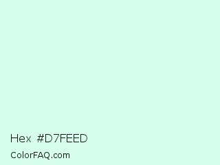 Hex #d7feed Color is a very light green color and the nearest color is White Ice #ddf9f1. Hex code #d7feed and RGB value is rgb(215,254,237). In RGB color space, this color is composed of 84% red, 100% green, 93% blue, In CMYK color space, this color is composed of 15% cyan, 0% magenta, 7% yellow , 0% black , In HSL color space, this color has a hue angle of 154° , 95% saturation and 92% lightness.