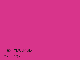 Hex #d8348b Color is a normal rose color and the nearest color is Cerise #da3287. Hex code #d8348b and RGB value is rgb(216,52,139). In RGB color space, this color is composed of 85% red, 20% green, 55% blue, In CMYK color space, this color is composed of 0% cyan, 76% magenta, 36% yellow , 15% black , In HSL color space, this color has a hue angle of 328° , 68% saturation and 53% lightness.