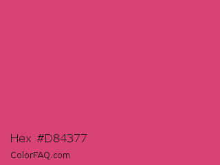 Hex #d84377 Color is a normal rose color and the nearest color is Cabaret #d94972. Hex code #d84377 and RGB value is rgb(216,67,119). In RGB color space, this color is composed of 85% red, 26% green, 47% blue, In CMYK color space, this color is composed of 0% cyan, 69% magenta, 45% yellow , 15% black , In HSL color space, this color has a hue angle of 339° , 66% saturation and 55% lightness.