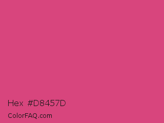 Hex #d8457d Color is a normal rose color and the nearest color is Magenta Pantone #d0417e. Hex code #d8457d and RGB value is rgb(216,69,125). In RGB color space, this color is composed of 85% red, 27% green, 49% blue, In CMYK color space, this color is composed of 0% cyan, 68% magenta, 42% yellow , 15% black , In HSL color space, this color has a hue angle of 337° , 65% saturation and 56% lightness.