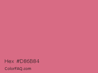 Hex #d86b84 Color is a light red color and the nearest color is Blush #de5d83. Hex code #d86b84 and RGB value is rgb(216,107,132). In RGB color space, this color is composed of 85% red, 42% green, 52% blue, In CMYK color space, this color is composed of 0% cyan, 50% magenta, 39% yellow , 15% black , In HSL color space, this color has a hue angle of 346° , 58% saturation and 63% lightness.