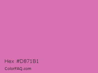 Hex #d871b1 Color is a light magenta color and the nearest color is Sky Magenta #cf71af. Hex code #d871b1 and RGB value is rgb(216,113,177). In RGB color space, this color is composed of 85% red, 44% green, 69% blue, In CMYK color space, this color is composed of 0% cyan, 48% magenta, 18% yellow , 15% black , In HSL color space, this color has a hue angle of 323° , 57% saturation and 65% lightness.