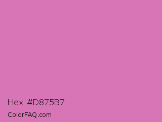 Hex #d875b7 Color is a light magenta color and the nearest color is Sky Magenta #cf71af. Hex code #d875b7 and RGB value is rgb(216,117,183). In RGB color space, this color is composed of 85% red, 46% green, 72% blue, In CMYK color space, this color is composed of 0% cyan, 46% magenta, 15% yellow , 15% black , In HSL color space, this color has a hue angle of 320° , 56% saturation and 65% lightness.