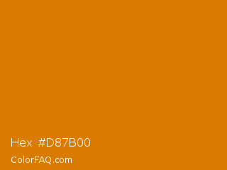 Hex #d87b00 Color is a normal orange color and the nearest color is Fulvous #e48400. Hex code #d87b00 and RGB value is rgb(216,123,0). In RGB color space, this color is composed of 85% red, 48% green, 0% blue, In CMYK color space, this color is composed of 0% cyan, 43% magenta, 100% yellow , 15% black , In HSL color space, this color has a hue angle of 34° , 100% saturation and 42% lightness.