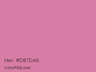 Hex #d87da6 Color is a light rose color and the nearest color is Wild Orchid #d470a2. Hex code #d87da6 and RGB value is rgb(216,125,166). In RGB color space, this color is composed of 85% red, 49% green, 65% blue, In CMYK color space, this color is composed of 0% cyan, 42% magenta, 23% yellow , 15% black , In HSL color space, this color has a hue angle of 333° , 54% saturation and 67% lightness.