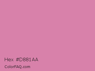 Hex #d881aa Color is a light rose color and the nearest color is Middle Purple #d982b5. Hex code #d881aa and RGB value is rgb(216,129,170). In RGB color space, this color is composed of 85% red, 51% green, 67% blue, In CMYK color space, this color is composed of 0% cyan, 40% magenta, 21% yellow , 15% black , In HSL color space, this color has a hue angle of 332° , 53% saturation and 68% lightness.