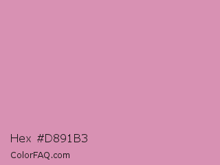 Hex #d891b3 Color is a light rose color and the nearest color is Middle Purple #d982b5. Hex code #d891b3 and RGB value is rgb(216,145,179). In RGB color space, this color is composed of 85% red, 57% green, 70% blue, In CMYK color space, this color is composed of 0% cyan, 33% magenta, 17% yellow , 15% black , In HSL color space, this color has a hue angle of 331° , 48% saturation and 71% lightness.