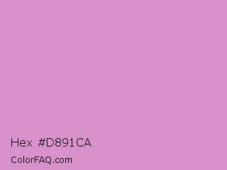 Hex #d891ca Color is a light magenta color and the nearest color is Light Medium Orchid #d39bcb. Hex code #d891ca and RGB value is rgb(216,145,202). In RGB color space, this color is composed of 85% red, 57% green, 79% blue, In CMYK color space, this color is composed of 0% cyan, 33% magenta, 6% yellow , 15% black , In HSL color space, this color has a hue angle of 312° , 48% saturation and 71% lightness.