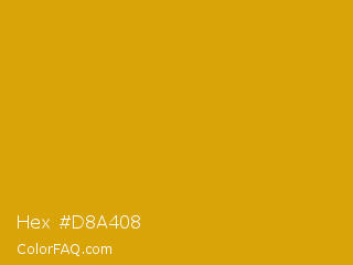 Hex #d8a408 Color is a normal orange color and the nearest color is Galliano #dcb20c. Hex code #d8a408 and RGB value is rgb(216,164,8). In RGB color space, this color is composed of 85% red, 64% green, 3% blue, In CMYK color space, this color is composed of 0% cyan, 24% magenta, 96% yellow , 15% black , In HSL color space, this color has a hue angle of 45° , 93% saturation and 44% lightness.