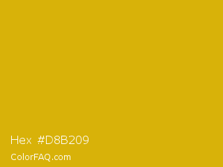 Hex #d8b209 Color is a normal yellow color and the nearest color is Galliano #dcb20c. Hex code #d8b209 and RGB value is rgb(216,178,9). In RGB color space, this color is composed of 85% red, 70% green, 4% blue, In CMYK color space, this color is composed of 0% cyan, 18% magenta, 96% yellow , 15% black , In HSL color space, this color has a hue angle of 49° , 92% saturation and 44% lightness.