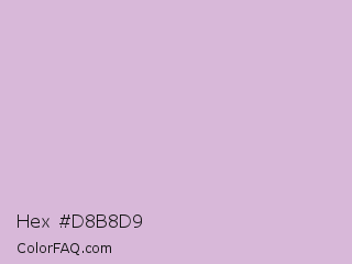Hex #d8b8d9 Color is a light magenta color and the nearest color is Thistle #d8bfd8. Hex code #d8b8d9 and RGB value is rgb(216,184,217). In RGB color space, this color is composed of 85% red, 72% green, 85% blue, In CMYK color space, this color is composed of 0% cyan, 15% magenta, 0% yellow , 15% black , In HSL color space, this color has a hue angle of 298° , 30% saturation and 79% lightness.