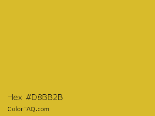 Hex #d8bb2b Color is a normal yellow color and the nearest color is Gold Metallic #d4af37. Hex code #d8bb2b and RGB value is rgb(216,187,43). In RGB color space, this color is composed of 85% red, 73% green, 17% blue, In CMYK color space, this color is composed of 0% cyan, 13% magenta, 80% yellow , 15% black , In HSL color space, this color has a hue angle of 50° , 69% saturation and 51% lightness.