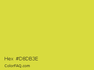 Hex #d8db3e Color is a normal yellow color and the nearest color is Wattle #dcd747. Hex code #d8db3e and RGB value is rgb(216,219,62). In RGB color space, this color is composed of 85% red, 86% green, 24% blue, In CMYK color space, this color is composed of 1% cyan, 0% magenta, 72% yellow , 14% black , In HSL color space, this color has a hue angle of 61° , 69% saturation and 55% lightness.