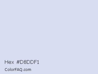 Hex #d8ddf1 Color is a very light blue color and the nearest color is Link Water #d9e4f5. Hex code #d8ddf1 and RGB value is rgb(216,221,241). In RGB color space, this color is composed of 85% red, 87% green, 95% blue, In CMYK color space, this color is composed of 10% cyan, 8% magenta, 0% yellow , 5% black , In HSL color space, this color has a hue angle of 228° , 47% saturation and 90% lightness.