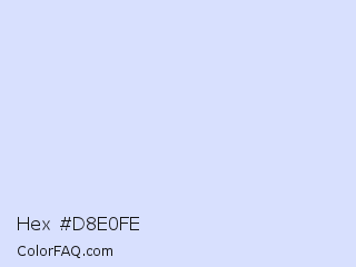 Hex #d8e0fe Color is a very light blue color and the nearest color is Hawkes Blue #d4e2fc. Hex code #d8e0fe and RGB value is rgb(216,224,254). In RGB color space, this color is composed of 85% red, 88% green, 100% blue, In CMYK color space, this color is composed of 15% cyan, 12% magenta, 0% yellow , 0% black , In HSL color space, this color has a hue angle of 227° , 95% saturation and 92% lightness.