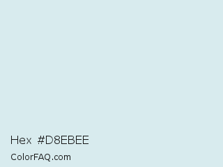 Hex #d8ebee Color is a very light cyan color and the nearest color is Azureish White #dbe9f4. Hex code #d8ebee and RGB value is rgb(216,235,238). In RGB color space, this color is composed of 85% red, 92% green, 93% blue, In CMYK color space, this color is composed of 9% cyan, 1% magenta, 0% yellow , 7% black , In HSL color space, this color has a hue angle of 188° , 39% saturation and 89% lightness.
