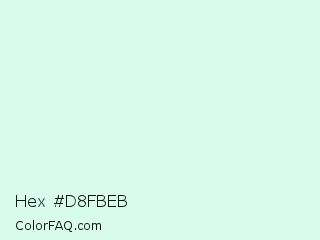 Hex #d8fbeb Color is a very light green color and the nearest color is White Ice #ddf9f1. Hex code #d8fbeb and RGB value is rgb(216,251,235). In RGB color space, this color is composed of 85% red, 98% green, 92% blue, In CMYK color space, this color is composed of 14% cyan, 0% magenta, 6% yellow , 2% black , In HSL color space, this color has a hue angle of 153° , 81% saturation and 92% lightness.