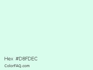 Hex #d8fdec Color is a very light green color and the nearest color is White Ice #ddf9f1. Hex code #d8fdec and RGB value is rgb(216,253,236). In RGB color space, this color is composed of 85% red, 99% green, 93% blue, In CMYK color space, this color is composed of 15% cyan, 0% magenta, 7% yellow , 1% black , In HSL color space, this color has a hue angle of 152° , 90% saturation and 92% lightness.