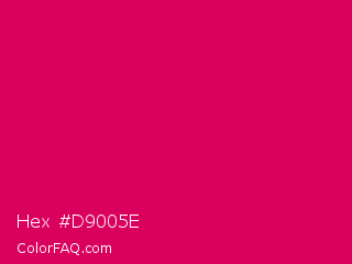 Hex #d9005e Color is a normal rose color and the nearest color is Rubine Red #d10056. Hex code #d9005e and RGB value is rgb(217,0,94). In RGB color space, this color is composed of 85% red, 0% green, 37% blue, In CMYK color space, this color is composed of 0% cyan, 100% magenta, 57% yellow , 15% black , In HSL color space, this color has a hue angle of 334° , 100% saturation and 43% lightness.