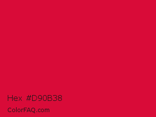 Hex #d90b38 Color is a normal red color and the nearest color is Crimson #dc143c. Hex code #d90b38 and RGB value is rgb(217,11,56). In RGB color space, this color is composed of 85% red, 4% green, 22% blue, In CMYK color space, this color is composed of 0% cyan, 95% magenta, 74% yellow , 15% black , In HSL color space, this color has a hue angle of 347° , 90% saturation and 45% lightness.