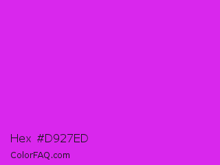 Hex #d927ed Color is a normal magenta color and the nearest color is Steel Pink #cc33cc. Hex code #d927ed and RGB value is rgb(217,39,237). In RGB color space, this color is composed of 85% red, 15% green, 93% blue, In CMYK color space, this color is composed of 8% cyan, 84% magenta, 0% yellow , 7% black , In HSL color space, this color has a hue angle of 294° , 85% saturation and 54% lightness.