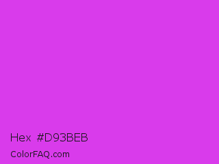Hex #d93beb Color is a normal magenta color and the nearest color is Steel Pink #cc33cc. Hex code #d93beb and RGB value is rgb(217,59,235). In RGB color space, this color is composed of 85% red, 23% green, 92% blue, In CMYK color space, this color is composed of 8% cyan, 75% magenta, 0% yellow , 8% black , In HSL color space, this color has a hue angle of 294° , 81% saturation and 58% lightness.