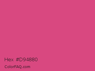 Hex #d94880 Color is a normal rose color and the nearest color is Mystic #d65282. Hex code #d94880 and RGB value is rgb(217,72,128). In RGB color space, this color is composed of 85% red, 28% green, 50% blue, In CMYK color space, this color is composed of 0% cyan, 67% magenta, 41% yellow , 15% black , In HSL color space, this color has a hue angle of 337° , 66% saturation and 57% lightness.