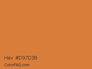 Hex #d97d3b Color is a normal orange color and the nearest color is Raw Sienna Crayola #d27d46. Hex code #d97d3b and RGB value is rgb(217,125,59). In RGB color space, this color is composed of 85% red, 49% green, 23% blue, In CMYK color space, this color is composed of 0% cyan, 42% magenta, 73% yellow , 15% black , In HSL color space, this color has a hue angle of 25° , 68% saturation and 54% lightness.