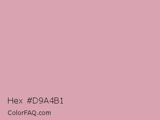 Hex #d9a4b1 Color is a light red color and the nearest color is Pale Chestnut #ddadaf. Hex code #d9a4b1 and RGB value is rgb(217,164,177). In RGB color space, this color is composed of 85% red, 64% green, 69% blue, In CMYK color space, this color is composed of 0% cyan, 24% magenta, 18% yellow , 15% black , In HSL color space, this color has a hue angle of 345° , 41% saturation and 75% lightness.