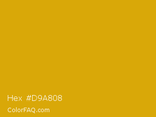 Hex #d9a808 Color is a normal yellow color and the nearest color is Galliano #dcb20c. Hex code #d9a808 and RGB value is rgb(217,168,8). In RGB color space, this color is composed of 85% red, 66% green, 3% blue, In CMYK color space, this color is composed of 0% cyan, 23% magenta, 96% yellow , 15% black , In HSL color space, this color has a hue angle of 46° , 93% saturation and 44% lightness.