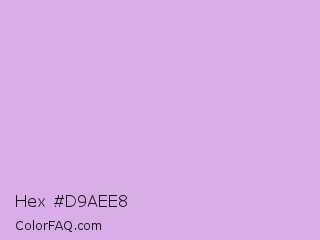 Hex #d9aee8 Color is a light purple color and the nearest color is Bright Ube #d19fe8. Hex code #d9aee8 and RGB value is rgb(217,174,232). In RGB color space, this color is composed of 85% red, 68% green, 91% blue, In CMYK color space, this color is composed of 6% cyan, 25% magenta, 0% yellow , 9% black , In HSL color space, this color has a hue angle of 284° , 56% saturation and 80% lightness.